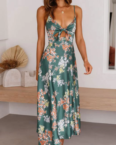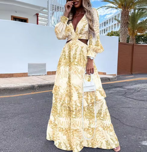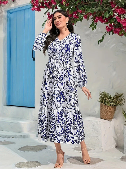 Geraldine V-neck Printed Long Dress