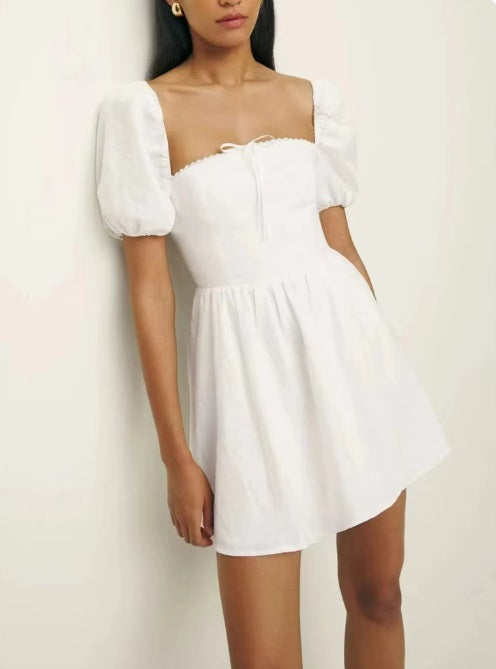 Gabrielle Puff Sleeve Linen Dress